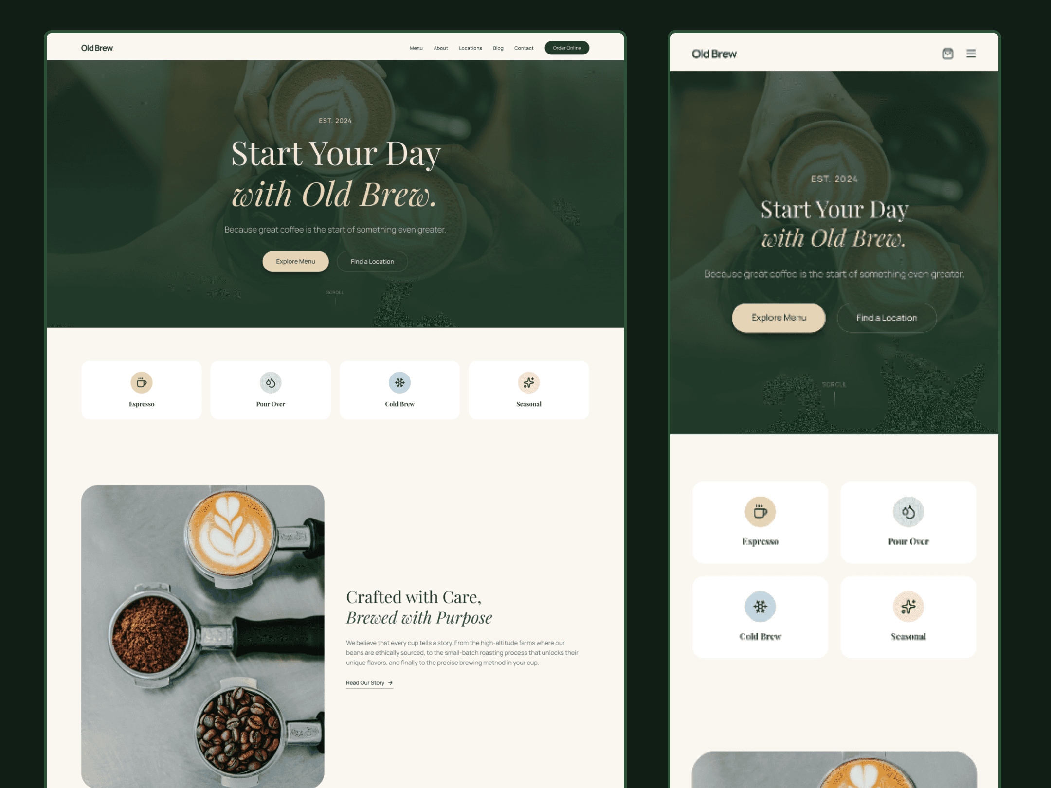This landing page was built for a boutique neighborhood cafe, combining earthy tones with inviting photography and clear call-to-action sections. The result is an atmosphere that mirrors the warmth and friendliness of the physical location.